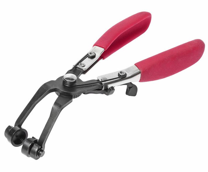 Съемник хомутов с фиксатором JTC (клещи изогнутые). Предназначен для снятия хомутов. Оснащён фиксаторами положения, подходит для снятия нижнего патрубка радиатора. Захват изогнут на 45 градусов.